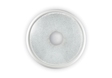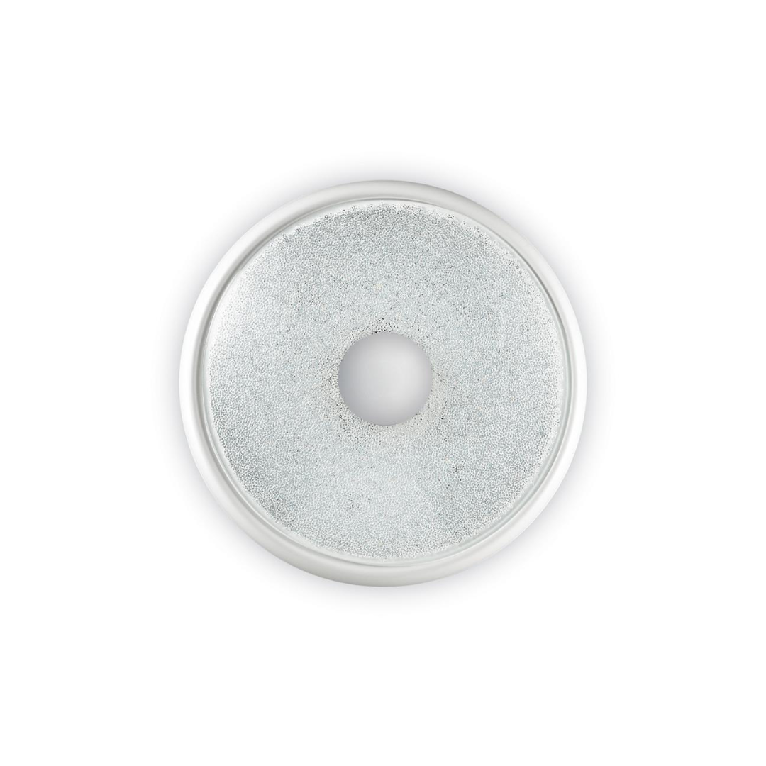 Metalinis rėmelis ir centrinis stiklinis laikiklis su satino žalvario arba matinės baltos spalvos apdaila. Skaidraus stiklo difuzorius su plytelėmis.