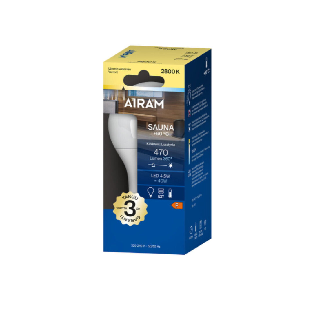 - 4711528 LED A61 4.5W/828 E27 lempa saunai Airam