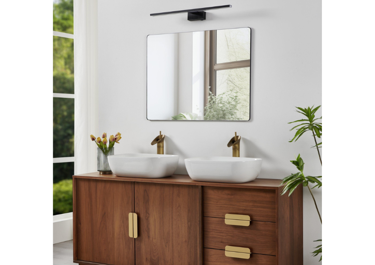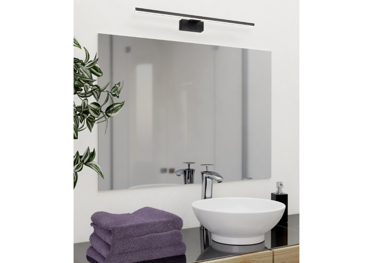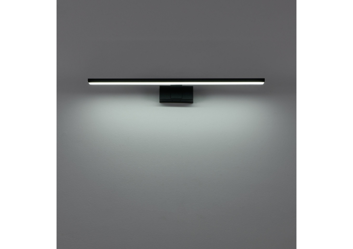 Elegantiškos juodos spalvos CONETTILLA LED veidrodinis šviestuvas sujungia minimalistinį dizainą su funkcionaliomis technologijomis. Pailgas korpusas sukuria tolygų šviesos pasiskirstymą, idealiai tinkantį kasdienei higienai ir kosmetikai. Integruota CCT funkcija leidžia lanksčiai reguliuoti spalvos temperatūrą tarp šiltai baltos, neutraliai baltos ir dienos šviesos baltos šviesos. 600 mm pločio CONETTILLA puikiai tinka didesniems veidrodžiams. Satininis difuzorius užtikrina malonią, be akinimo šviesą. Dėl IP44 apsaugos klasės šviestuvas idealiai tinka drėgnoms patalpoms ir lengvai atlaiko vandens purslus – puikiai tinka naudoti tiesiai virš vonios veidrodžio.