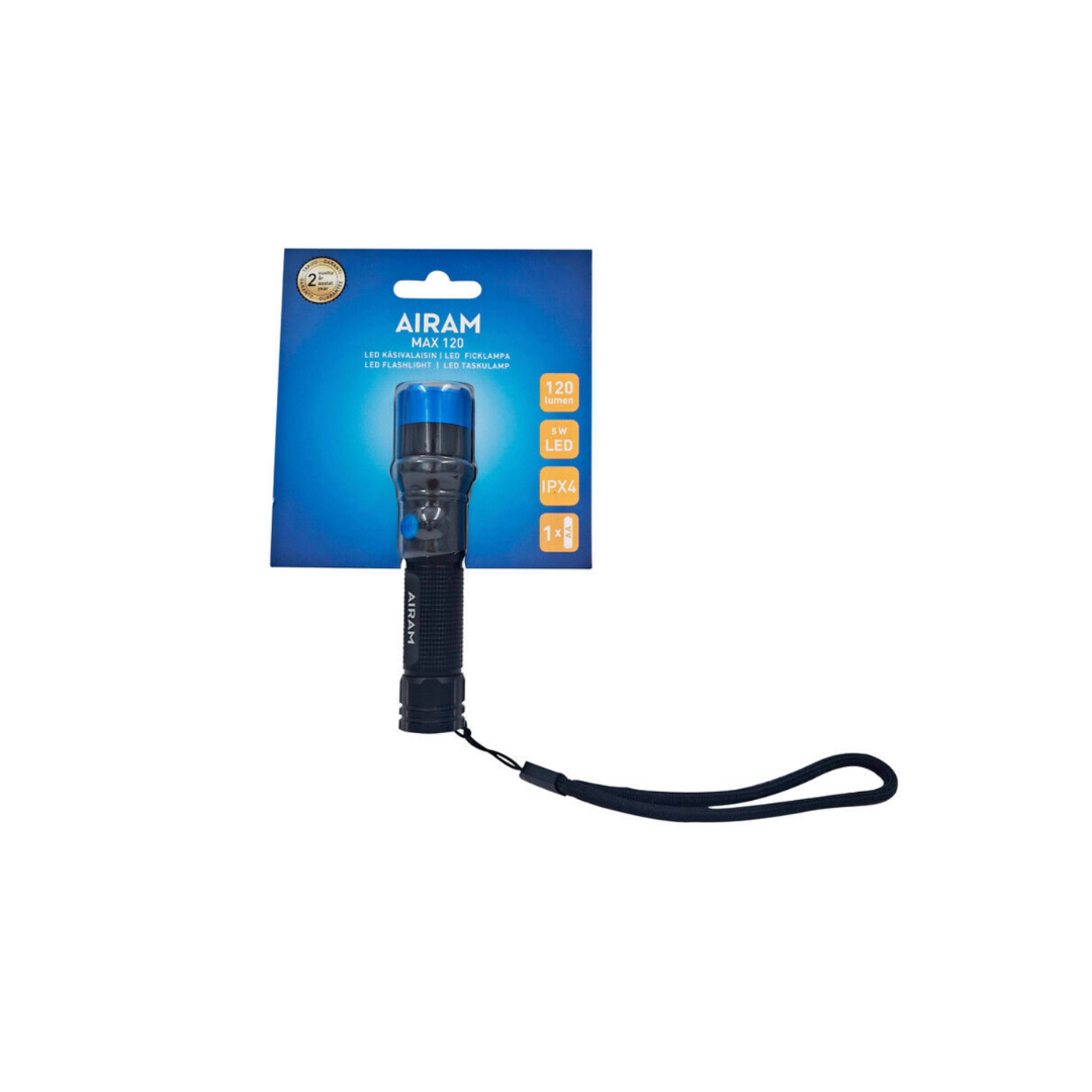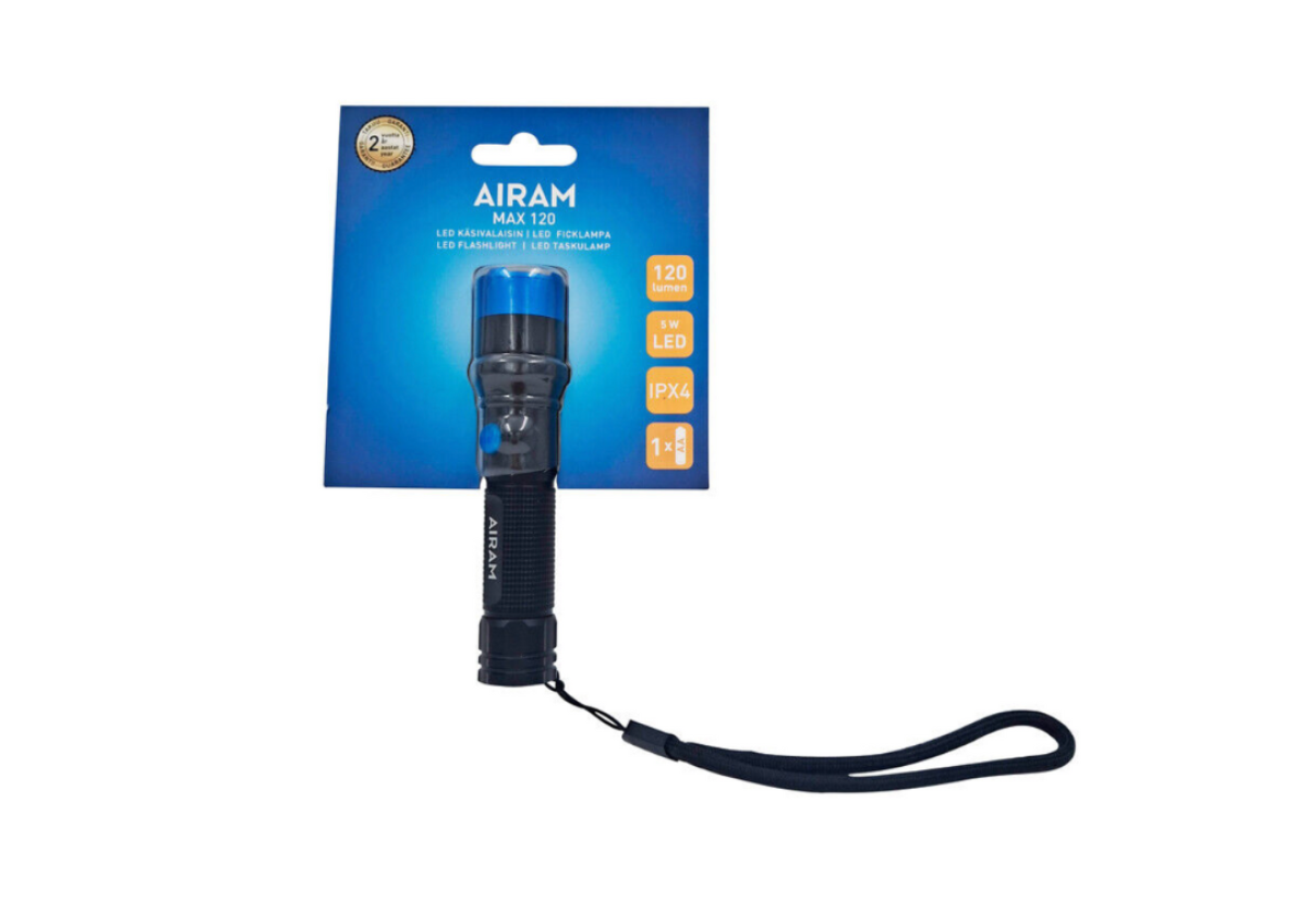 „Airam Max 120“ žibintuvėlis yra universalus šviesos šaltinis įvairiems poreikiams: laikykite galingą žibintuvėlį automobilyje nenumatytiems atvejams, laikykite jį namuose arba lengvai pasiekiamoje vietoje daiktadėžėje. Korpusas turi praktiškus fiksatorius, kurie neleidžia žibintuvėliui riedėti plokščiu paviršiumi. Aukštos kokybės juodas aliuminio korpusas su mėlyna akcento spalva. Reguliuojamas spindulys ir priartinimo funkcija. Riešo dirželis nešiojimui arba pakabinimui.
