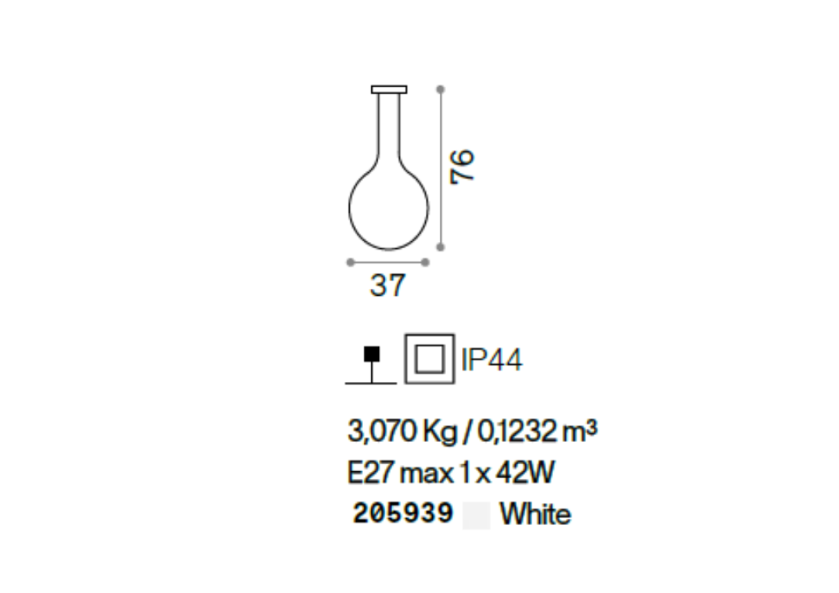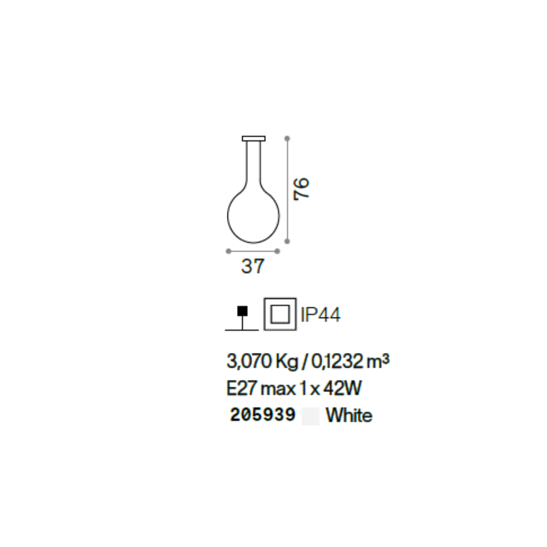 205939 šviestuvas JAR PT1 SMALL 42W E27 baltas IP44 Ideal Lux